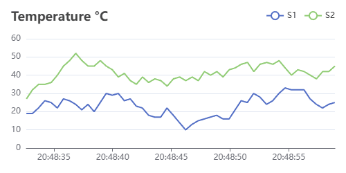 A line chart displays dynamic sequence data, with the horizontal axis representing time and the vertical axis representing values. Each line of data in a line chart is called a series and can be updated while the program is running.