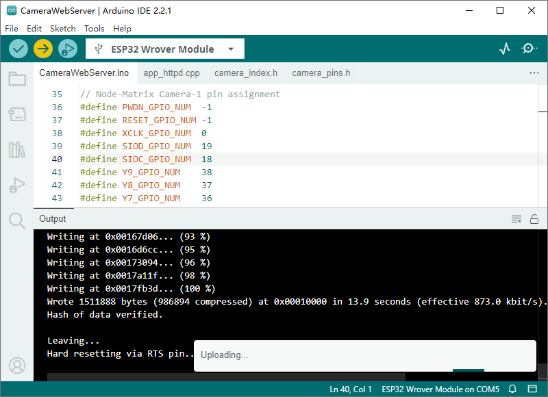 - Boards supporting auto-upload (like Node-Matrix Camera-1) require no further action, simply wait for the process to finish.