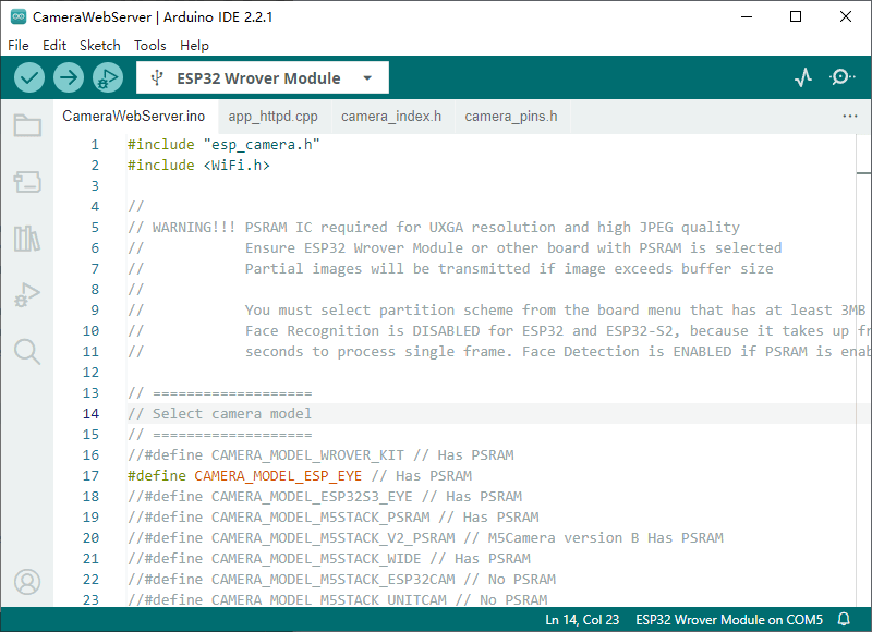 - ESP32 Wrover Module is a general option for esp32 development boards; you can select a specific model if it is available in the list.