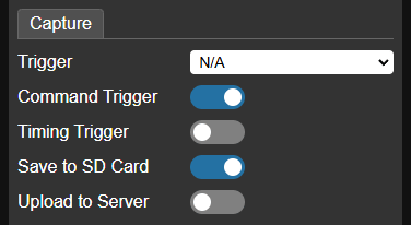 When the command trigger is enabled, captures can be triggered by sending commands through the network or serial port.